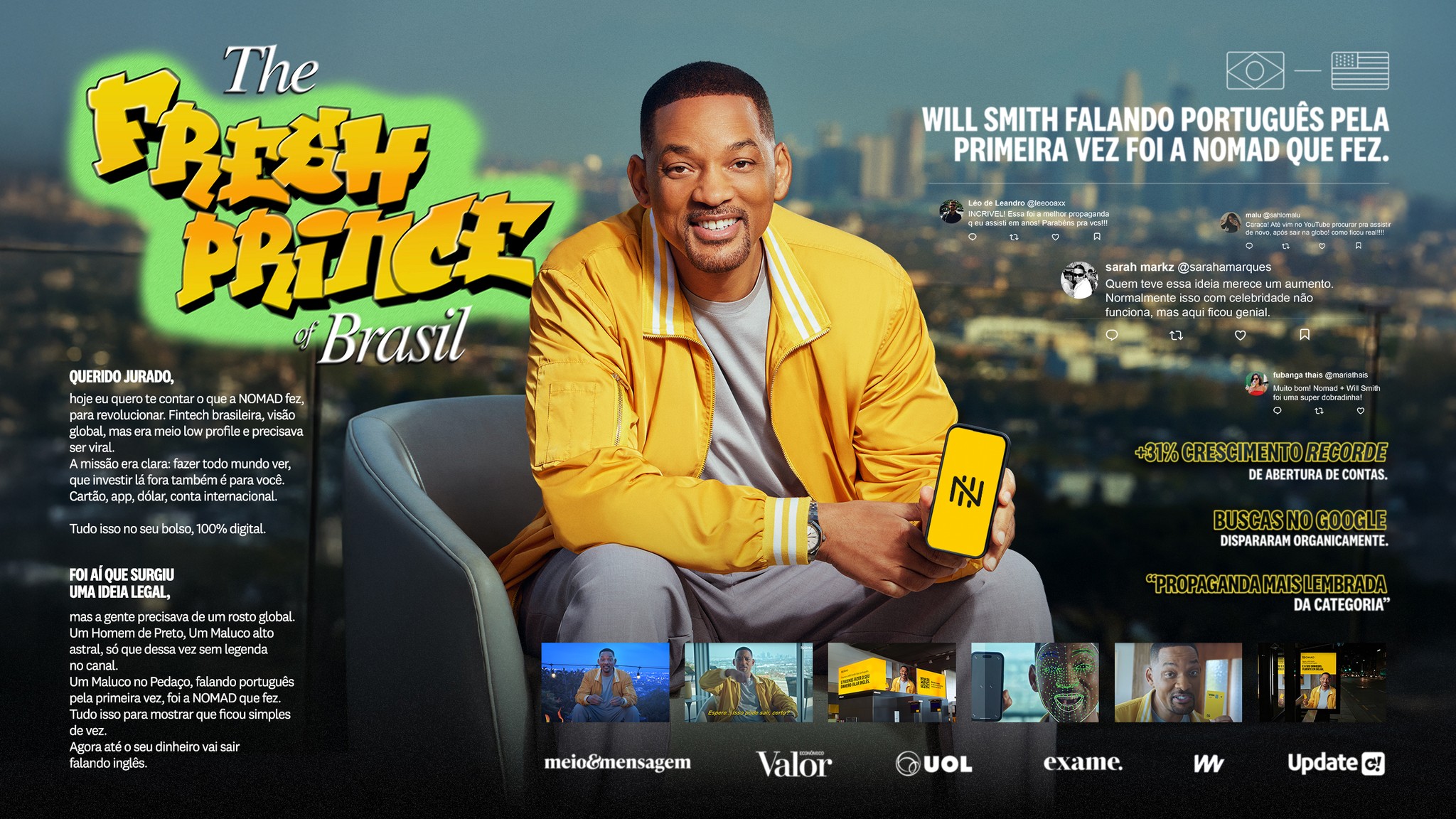 Nomad had Will Smith speaking Portuguese (and more) with no subtitles needed, just like its borderless international account. The campaign brought the Hollywood star closer to Brazilians while showing how easy your money can change nacionalities Nomad.